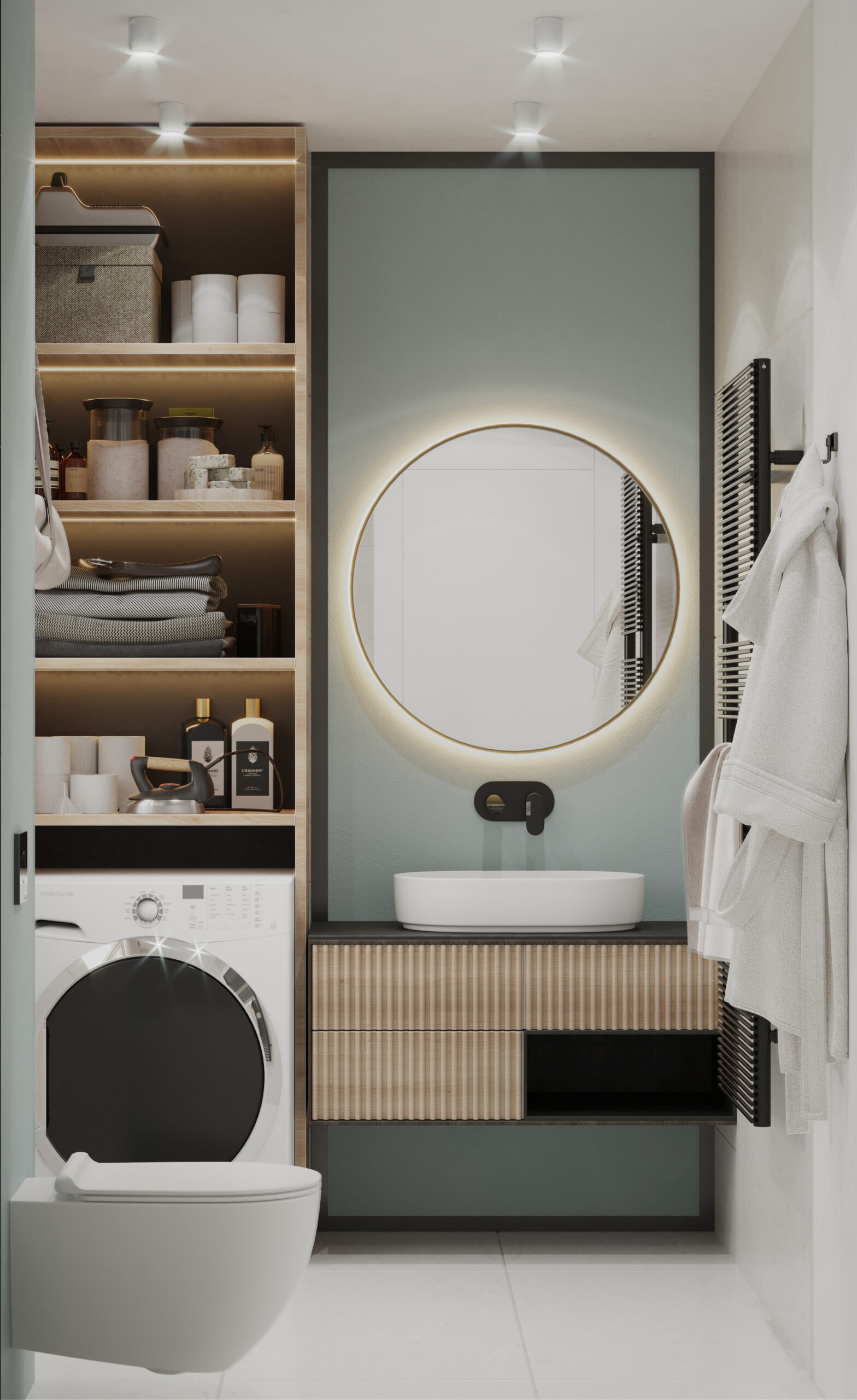 The Prada Porcelanosa collection in shades of sand brings the atmosphere we needed, which we complete with Piano furniture in light oak finish. For the master bathroom I chose a freestanding bathtub.